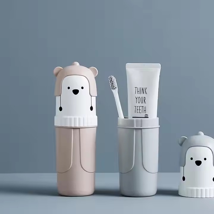 Caja de almacenamiento portátil para cepillos de dientes de viaje con vaso de enjuague
