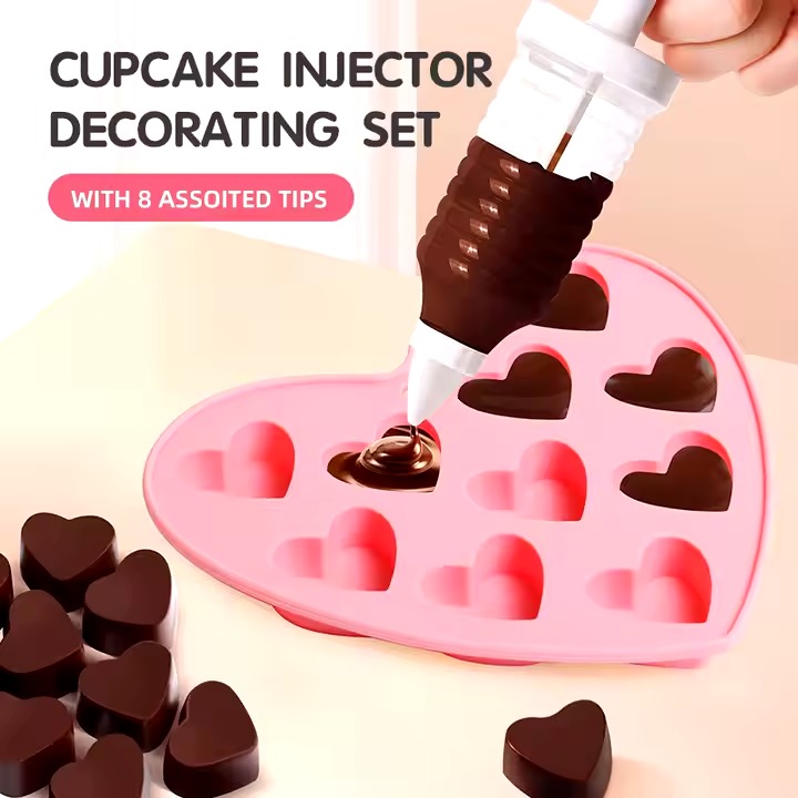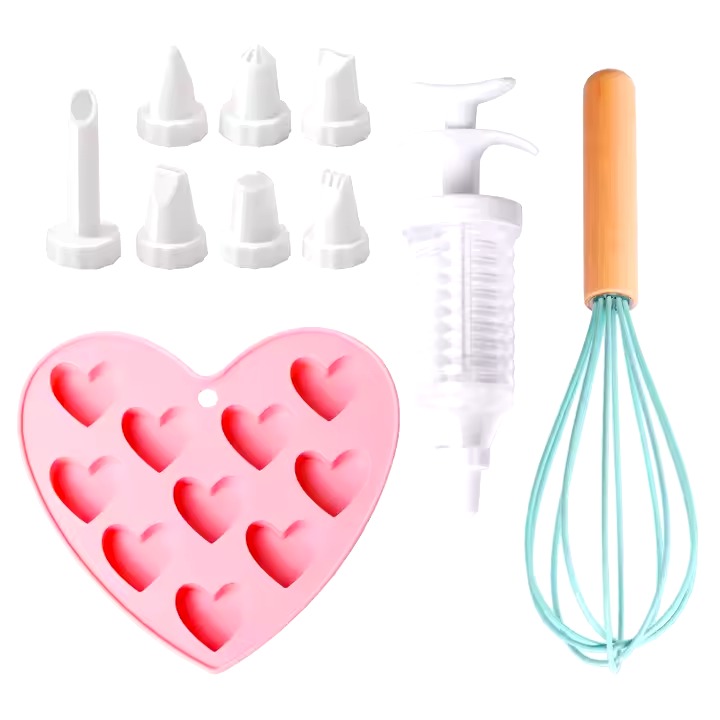 Juego de bricolaje para hornear, batidor de huevos manual, molde de silicona con forma de boca de flor, pistola para crema, kit para niños